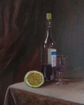 2002Fles wijn met glas en citroen