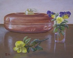 2005Roodkoperen kruik met viooltjes.